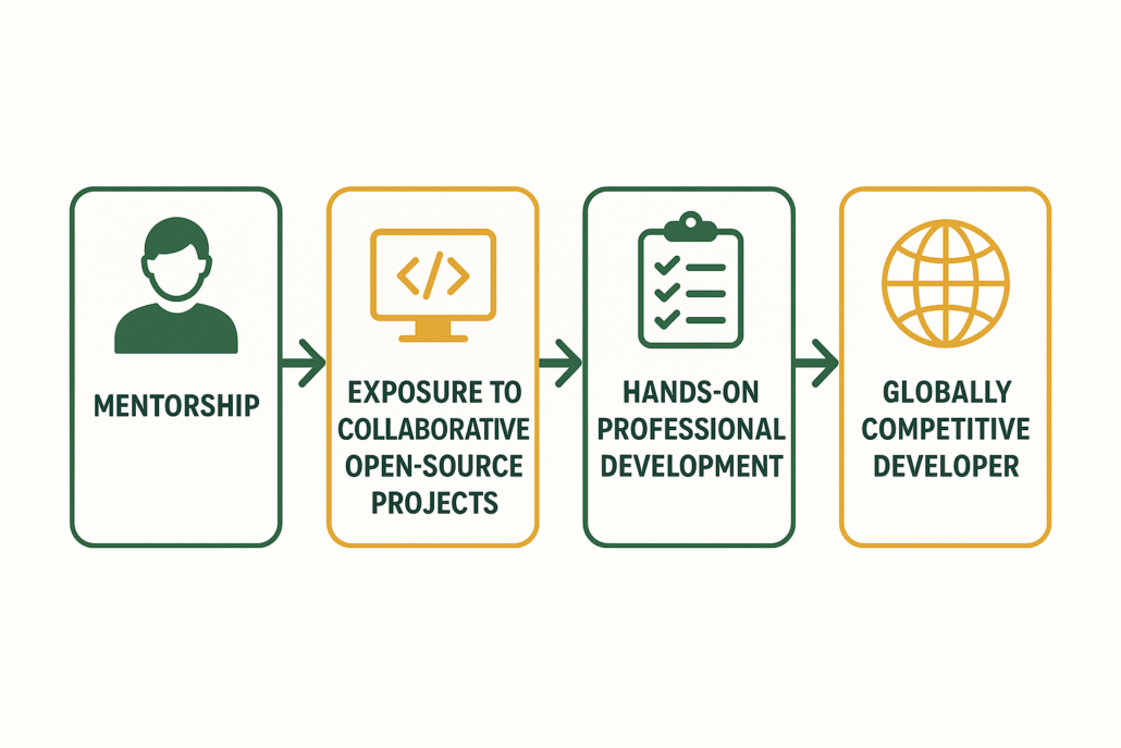We know internships play a vital role in bridging the gap between learning and real-world experience—especially for students from underserved communities. Through mentorship, exposure to collaborative open-source projects, and hands-on professional development, interns gain the tools to grow from talented coders into globally competitive developers.
